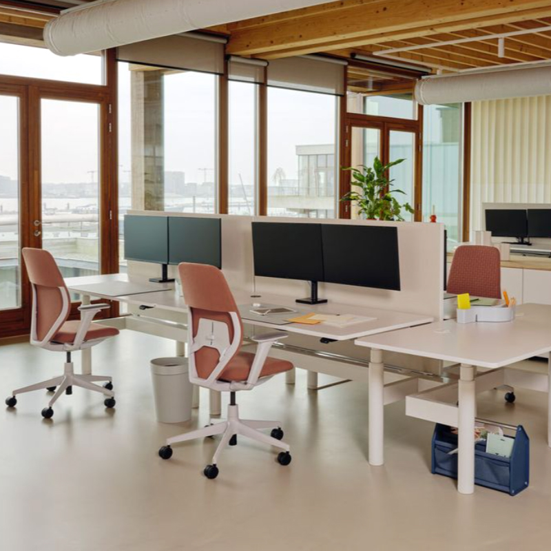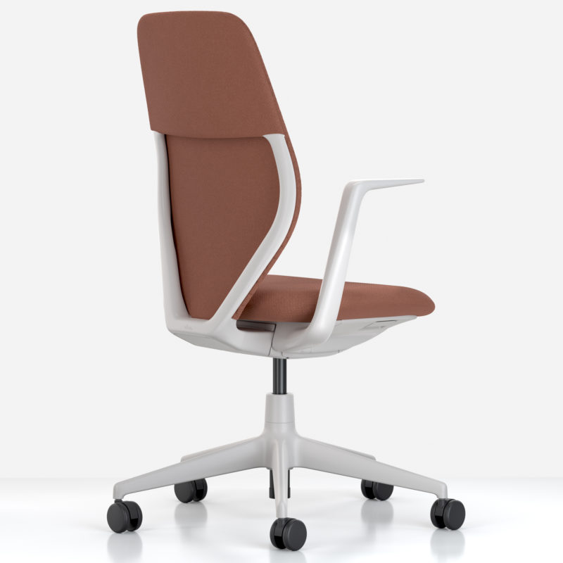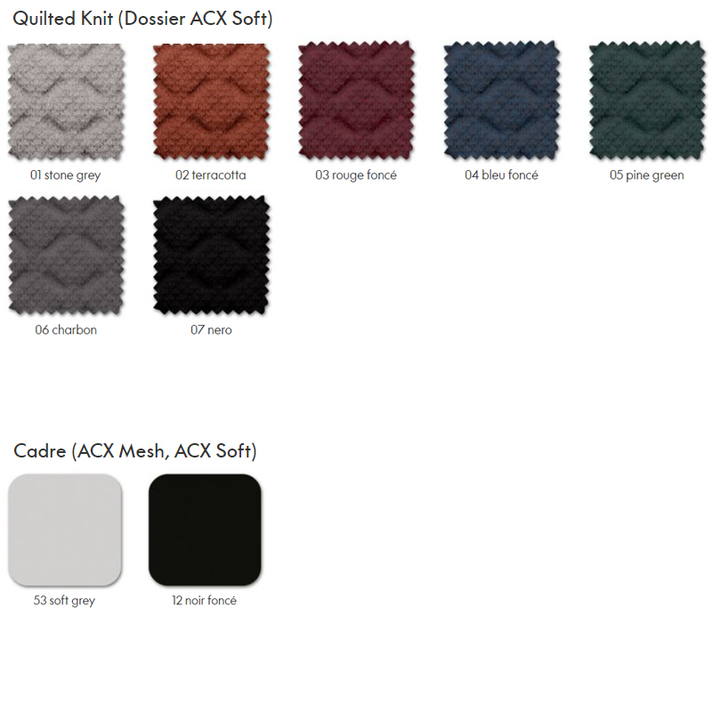 Détails : Le dossier d'ACX Soft est revêtu de tricot rembourré en polyester recyclé qui offre non seulement un confort exceptionnel, mais confère également au siège une apparence décontractée et accueillante. Recyclage – Recyclable jusqu'à 100 % et composé d'environ 60 % de matériaux recyclés Le mécanisme ACX s'adapte automatiquement à un vaste éventail d'utilisateurs : même des personnes très légères ou plus lourdes peuvent s'asseoir et bénéficier d'un confort instantané et d'un soutien optimal sur tout le déroulement des mouvements, avec comme seul réglage nécessaire la hauteur d'assise. Designer : Antonio Citterio, 2023