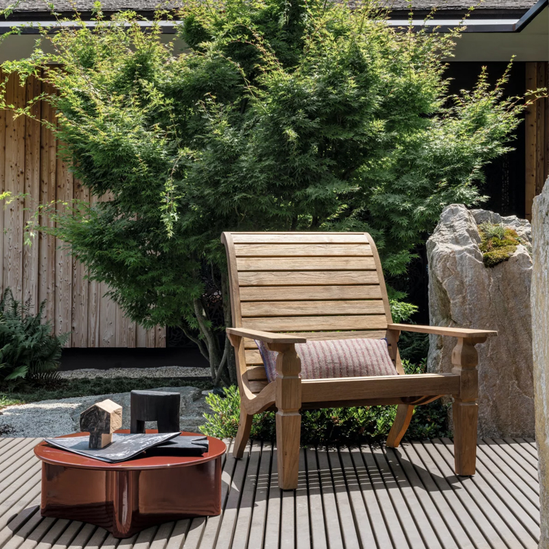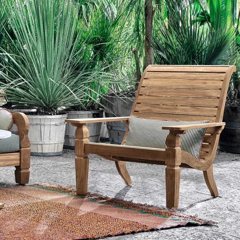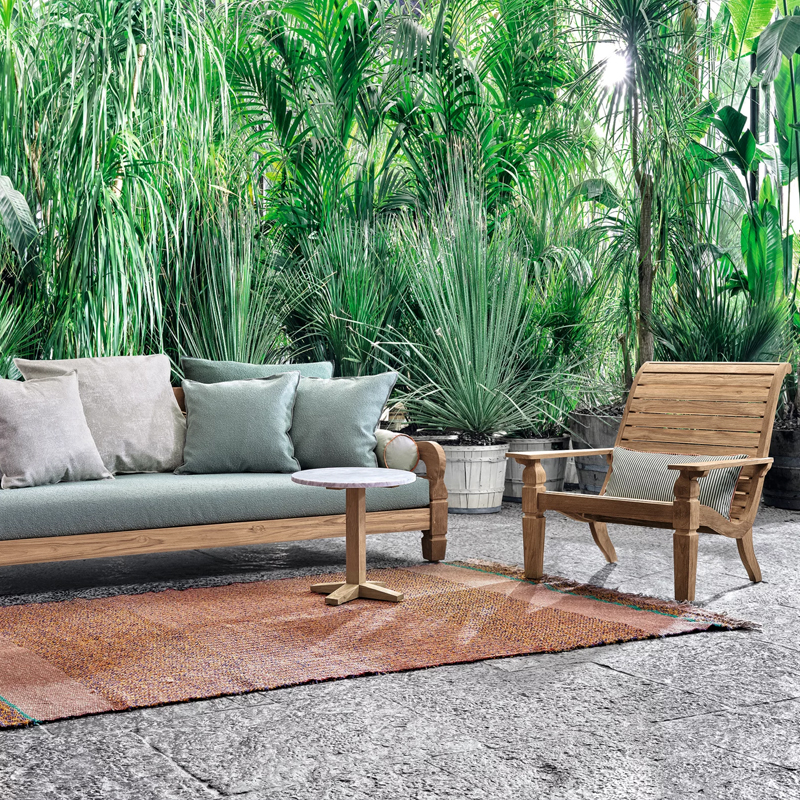 Détails : Fauteuil de style colonial et d’inspiration exotique, Jeko 26 possèdent une structure en éco-teck. Ce matériau provient de la valorisation de poutres et d’éléments de récupération en teck, qui sont réparés avec du bois recyclé, assemblés puis polis afin de mettre en valeur les veines d’origine du bois. Coussin cale-reins 60x30 cm, déhoussable. Designer : Paola Navone .