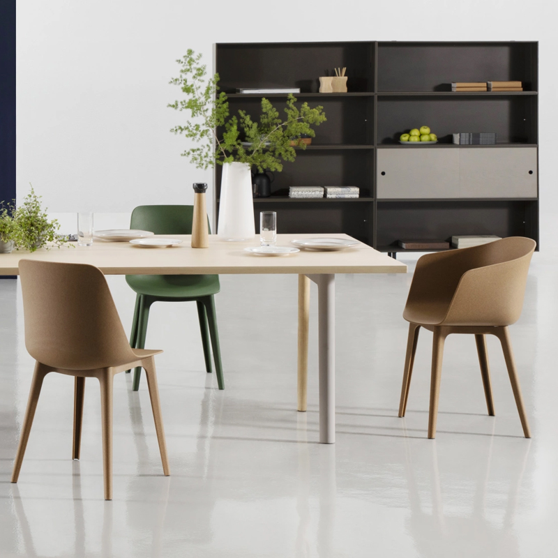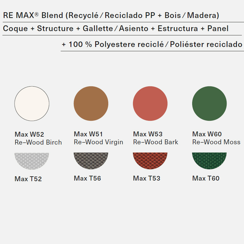 Détails : L'association des composants, des matériaux et des produits eux-mêmes est une sorte d'attitude de mélange et d'assortiment. Il s'agit d'un programme ouvert et adaptatif motivé par la recherche du confort, de la polyvalence et de la durabilité. Nous considérons notre collection en relation avec la multitude de contextes et de combinaisons possibles qui se cachent derrière les besoins et les projets. La collection comprend RE MAX®, le nouveau matériau fabriqué à partir de PP et de bois 100 % recyclés.