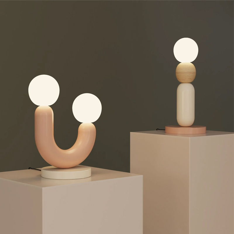 Détails : Structure : métal laqué Sphère : chêne naturel Cordon 1,5m caoutchouc transparent Globes en verre dépoli Suspension à Led.