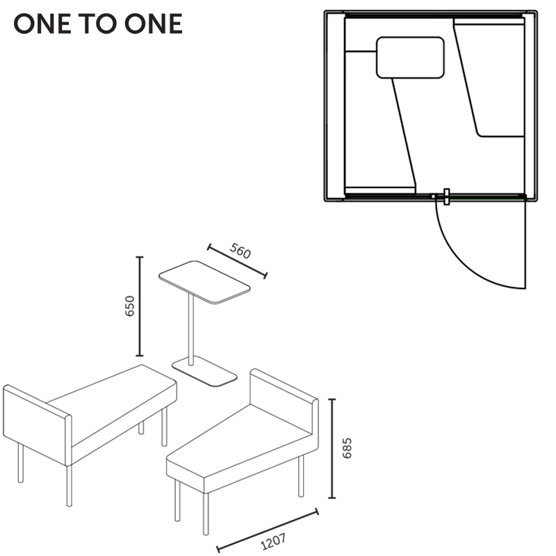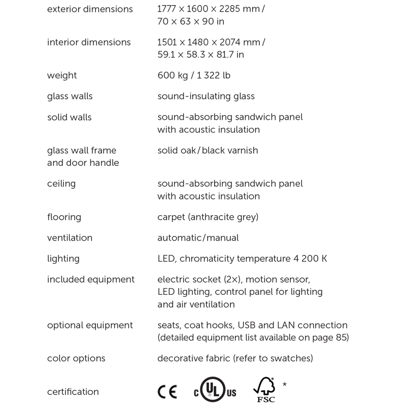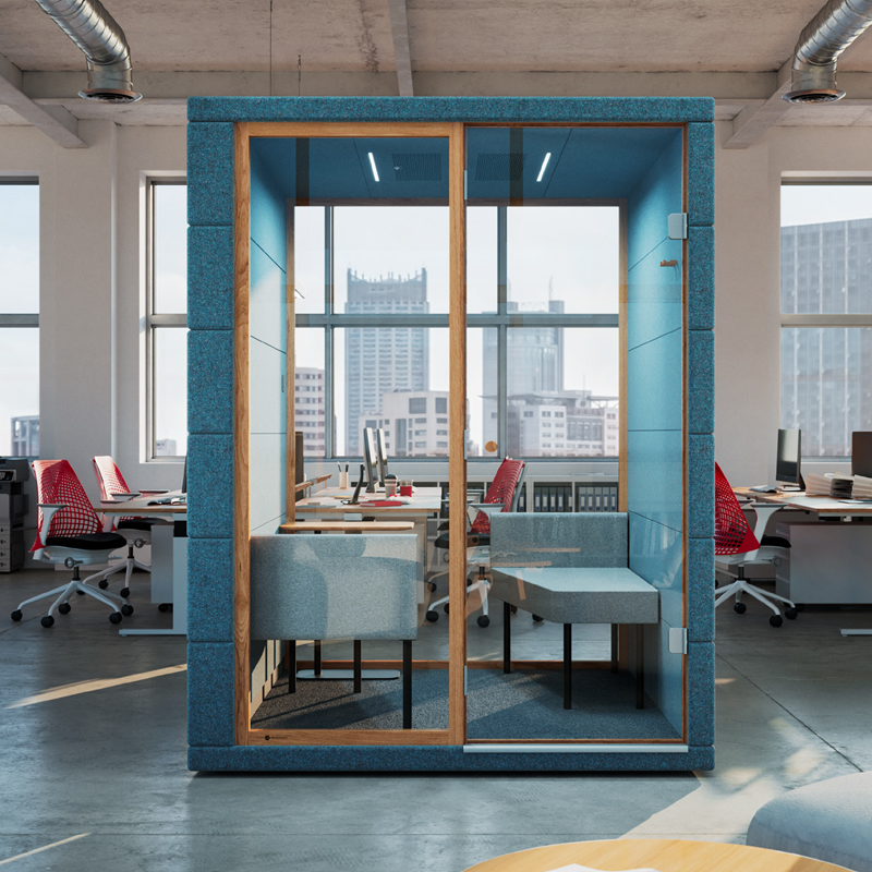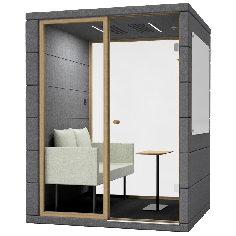 Détails : Une connexion parfaite avec l'environnement Un espace dans lequel vous et vos collègues pouvez réfléchir et discuter sans être dérangés. Même au milieu d'un bureau bruyant. MICROOFFICE® CUBIQ est la salle de réunion originale pour deux à quatre personnes avec un maximum d'intimité. Grâce à sa conception flexible, vous pouvez l'aménager avec des sièges de bar pour des réunions rapides ou avec des chaises confortables pour des discussions plus approfondies.