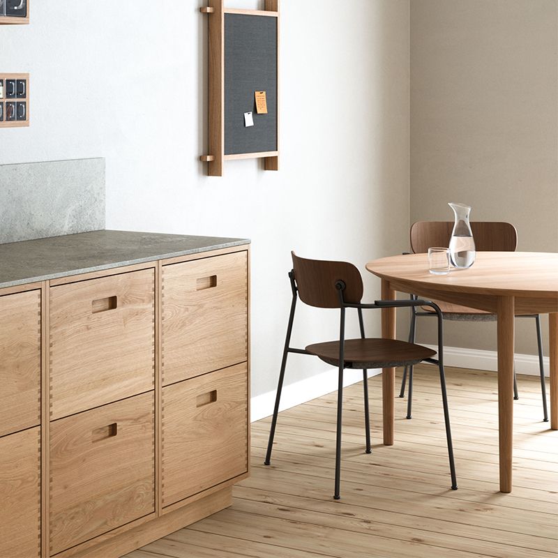 Détails : Fauteuil À FAIBLE CONSOMMATION DE RESSOURCES avec ou sans rembourrage. Créée dans le respect de l'environnement, Scope est une collection de sièges conçue par Hans Thyge & Co. Scope est certifiée FSC® et est une chaise économe en ressources, construite avec un fin placage pressé, de sorte qu'elle utilise le moins de bois possible sans compromettre sa solidité. Scope est conçu pour réduire le bruit. Les coussins de feutre intégrés sous le siège améliorent l'acoustique et créent un environnement plus agréable. Les patins en feutre protègent également l'assise rembourrée lorsque le fauteuil est empilé.