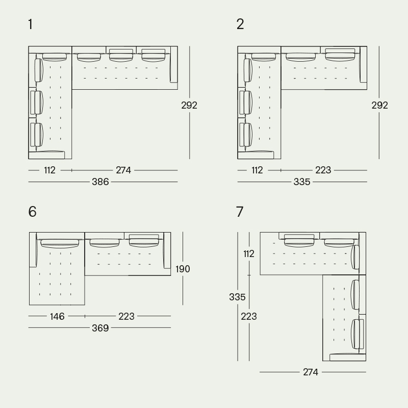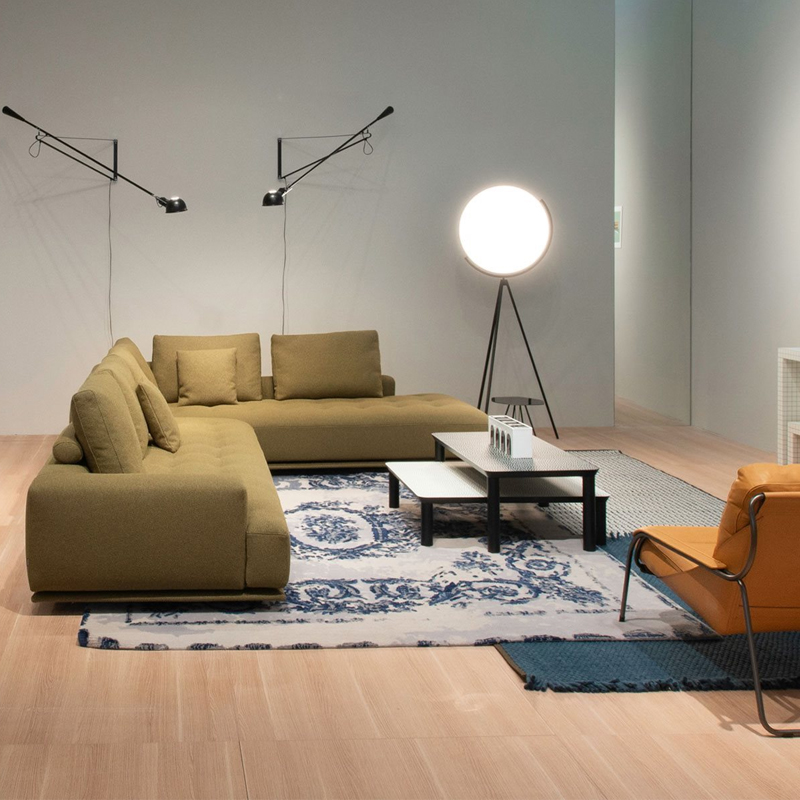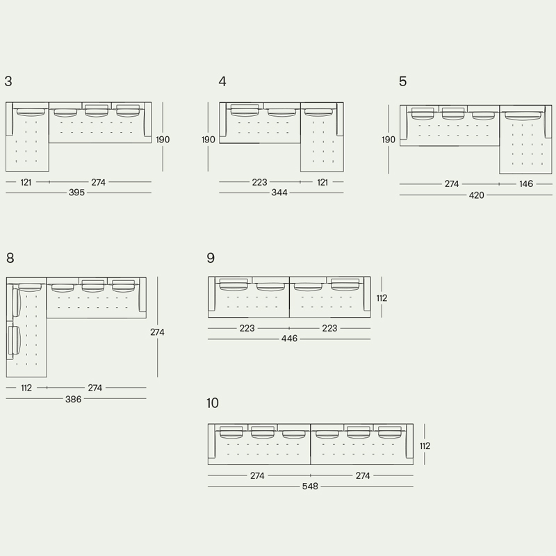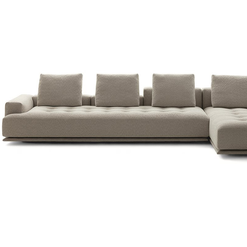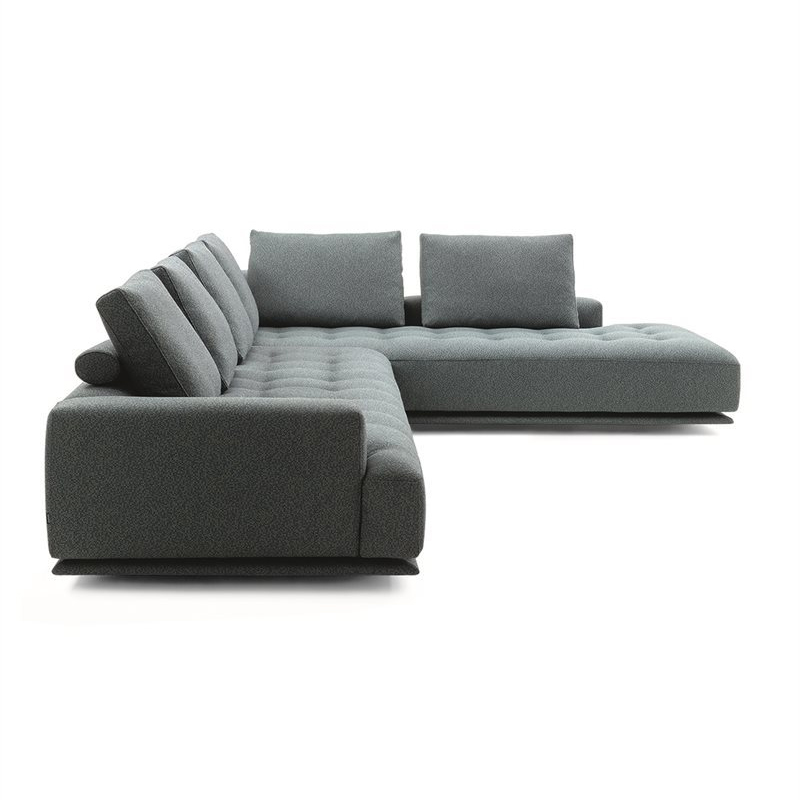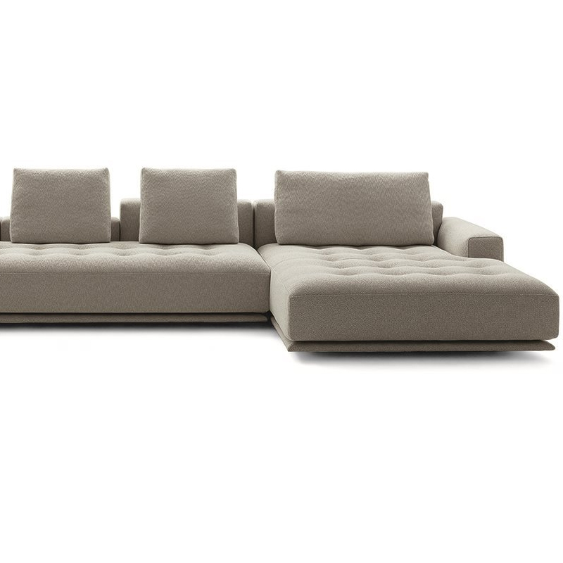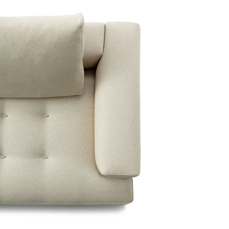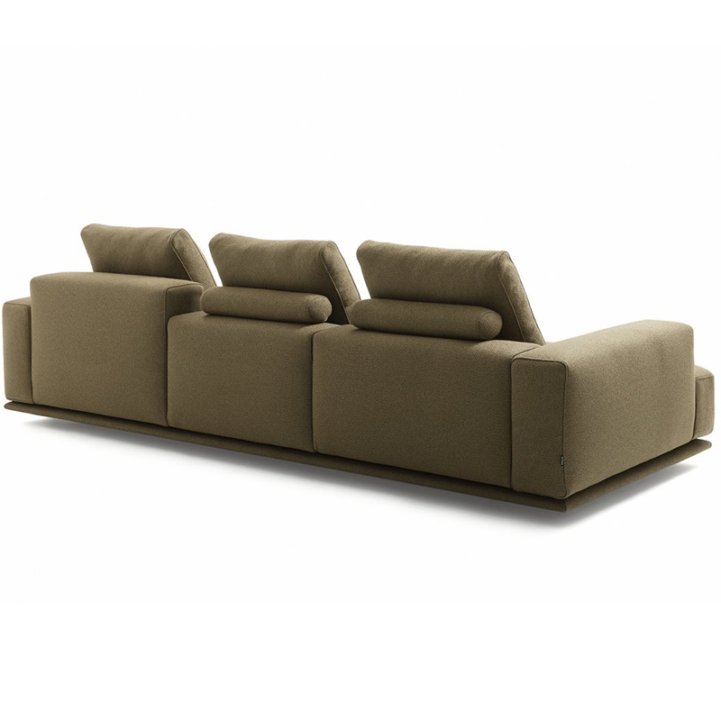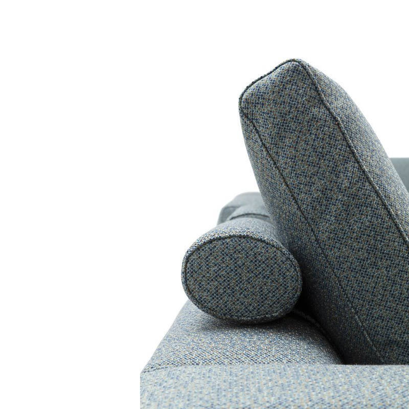 Détails : Canapés monoblocs et modulaires. Base en bois recouverte du même tissu ou cuir que le canapé. Cadre en bois. Suspension par bandes élastiques. Dossier et assise garnis de polyuréthane gradué/fibre de polyester thermoliée. Coussin du dossier en plumes d'oie 100% neuves. Coussin en forme de rouleau en polyuréthane/fibre polyester thermoliée. Housse amovible en tissu ou en cuir avec coussin d'assise matelassé. Sur demande, uniquement pour les canapés monoblocs, la version avec tous les dossiers plus hauts est disponible. Design Damian Williamson - 2019