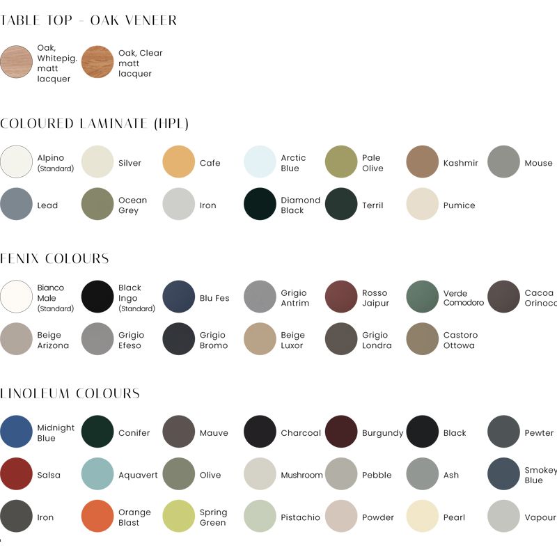 Détails : Les magnifiques plateaux de table en bois, en stratifié ou en linoléum sont à la fois attrayants sur le plan visuel et matériel et constituent un choix optimal pour les familles ou les restaurants. Les pieds sont disponibles en noir laqué, en chêne laqué transparent ou en chêne laqué blanc pigmenté, ce qui permet de créer une table personnelle qui s'harmonise avec le reste de la pièce et qui offre suffisamment d'espace pour les repas en famille ou entre amis. Existe en H 73 cm. Existe au format rond.