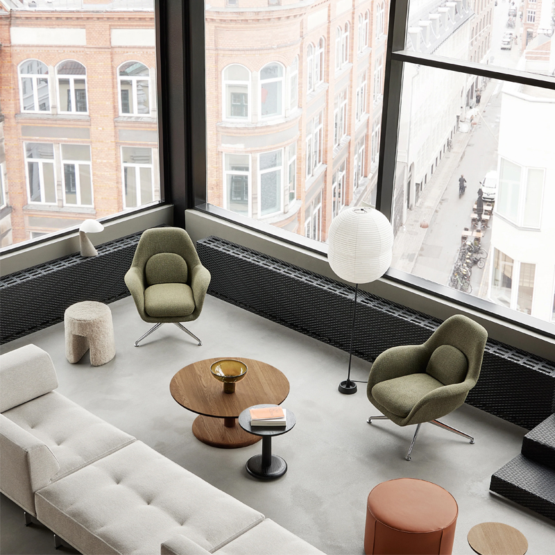 Détails : Swoon est un fauteuil lounge moderne à la forme sculptée. Ses courbes organiques permettent de s'asseoir dans de nombreuses positions, ce qui la rend parfaite pour les halls d'entrée, les réceptions et les espaces de détente, où l'on recherche une utilisation polyvalente. Space Copenhagen a conçu cette chaise pour combler le vide entre les chaises longues traditionnelles et les fauteuils plus grands - le résultat est une typologie moins formelle avec un caractère reconnaissable et contemporain. Existe avec un piètement central pivotant.