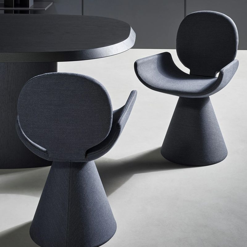 Détails : YOUPI est un hymne à la convivialité et à la joie d'être ensemble.‎ Vu de dos, le profil évoque l'image d'une figure humaine stylisée, prête à vous accueillir dans une confortable étreinte.‎ La chaise YOUPI frappe l'observateur par sa forme originale qui donne du style et de la légèreté à l'espace.‎ Elle se compose d'une série de formes différentes qui se combinent pour créer un ensemble harmonieux grâce au revêtement en tissu ou en cuir qui la recouvre entièrement : le dossier circulaire se fond dans l'assise large et le tout est soutenu par une base conique évasée.‎ YOUPI est également disponible dans une version avec quatre pieds en métal.‎ Designer : Conçue par Fabrice Berrux,